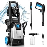 - 【Professional High Pressure Washer】Our high pressure washer is equipped with a 2000 watt motor. It can provide 100bar water pressure and 5.5 liters/minute water flow rate. It can easily clean any place and help you to finish the cleaning task quickly.