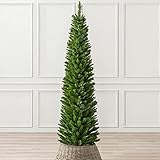 3CHRISTOWChristow Pencil Christmas Tree 6ft, Artificial Slim Narrow Green Spruce, Luxury Indoor Xmas Decoration, Natural Looking PE & PVC Needles, Easy Assembly with Stand, Tip Count 321 (skirt not included)