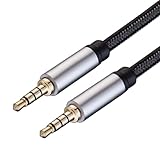 - Practical 3.5mm Audio Cable: UGREEN 4-Pole Mini Jack to Mini Jack Aux Cable supports both audio and microphone function. Perfect replacement cable for headsets with mic function. The 3.5mm male to male cable streams Hi-Fi stereo audio directly from the aux output (line-out) devices to aux input(line-in) devices, without audio converters, like connecting laptop to speaker, phone to headphones, TV to soundbar, phone to car stereo system.