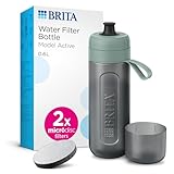 BRITA Water Filter Bottle Light Green (600ml) incl. 2x MicroDisc Filters - portable water filtration bottle for hydration on-the-go, filters chlorine, organic impurities, hormones and pesticides