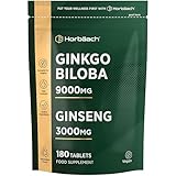 3Horbäach14% OffGinkgo Biloba and Korean Ginseng Tablets | High Strength | Ginkgo 9000mg & Ginseng Root 3000mg | 180 Vegan Tablets | by Horbaach