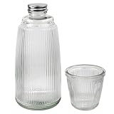 - Two-Part Design: Our glass set consists of two parts – the bottle with lid and the glass tumbler. The tumbler sits snug on top of the carafe bottle, creating a cohesive and visually appealing ensemble.