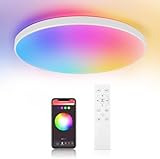 3CANMEIJIACANMEIJIA RGB Ceiling Light 24W Dimmable LED Ceiling Light,Bluetooth Bathroom Lights Ceiling with Remote Control,IP44 Waterproof Smart Ceiling Lights for Bedroom,Living Room