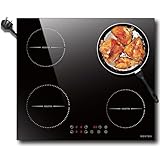 1KarinearKarinear Plug in Induction Hob, 4 Zones Electric Hob 60cm, with Touch Control 9 Power Level & Child Safety Lock, Timer, Black Crystal Glass