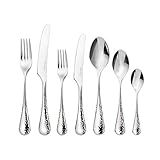 - SET INCLUDES - 8 x Table Knife, 8 x Table Fork, 8 x Soup Spoon, 8 x Side Knife, 8 x Side Fork, 8 x Dessert Spoon and 8 x English Teaspoon.