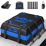 1BOYUJK27% OffBOYUJK Car Roof Bag - 20 Cubic/566L, Waterproof, No Rack Needed, Anti-Slip Mat & 6 Heavy-Duty Straps, Folding Soft Roof Box (Blue, 566L)
