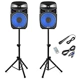 3PylePyle Pa Speaker System Active, Pa Speaker Set with Stands, 2 Bluetooth Dj Speakers, Wireless Portable Pa Systems, Loudspeaker Pair w/Mic, For Events, Parties, Conferences, DJ, Karaoke and more