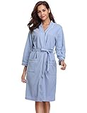 1Vlazom15% OffVlazom Waffle Dressing Gowns Unisex Kimono Robe Cotton Lightweight Bathrobe for All Seasons Spa Hotel Sleepwear, Blue-style a, L
