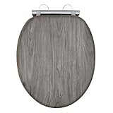 AQUALONA® Luxury Grey Oak Effect Toilet Seat - Soft Close MDF Moulded Wood Seat with Quick Release Button and Durable Hinges - Comfortable, Easy to Clean and Install with Universal Fittings
