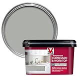 1V33V33 Renovation Cupboard & Worktop Paint - No Undercoat Needed - High Resistance To Water Stains & Scratches - Ultra Washable - Loft Grey Satin 2L